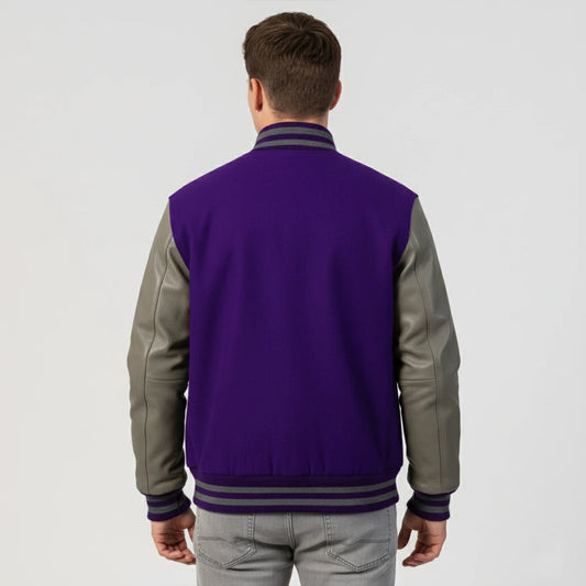 Purple Wool & Grey Leather Jacket