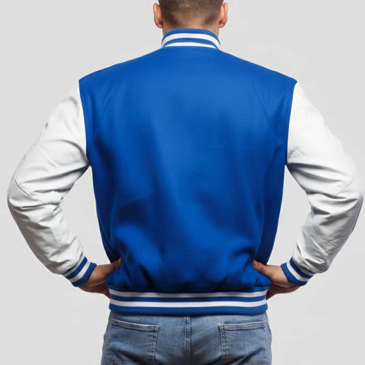 True Royal Wool & White Leather Jacket