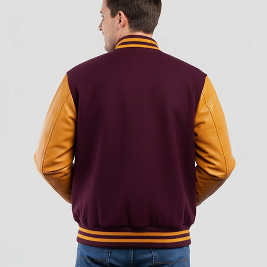 Maroon Wool & Bright Gold Leather Jacket