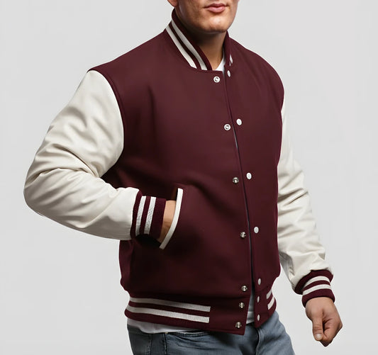 Maroon Wool & White Leather Jacket
